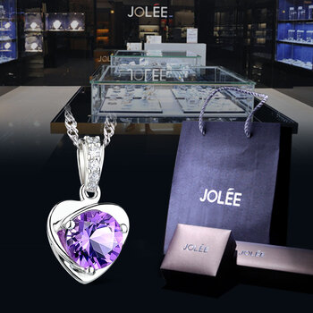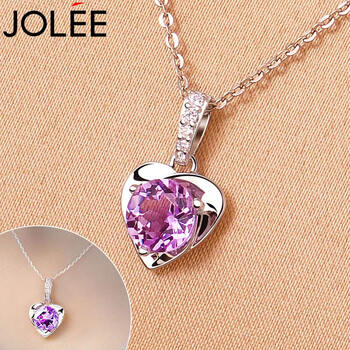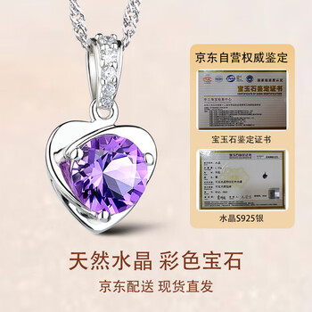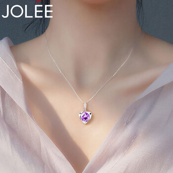 JOLEE项链天然紫水晶S925银彩色宝石爱心饰品简约送女士节日礼物