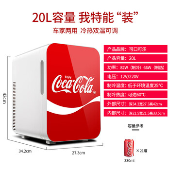 可口可乐(Coca-Cola)车载冰箱20L迷你小冰箱车家两用小型冰箱母乳冷藏加热小冰箱