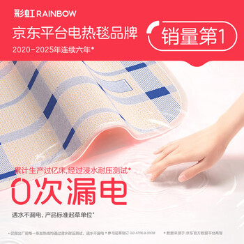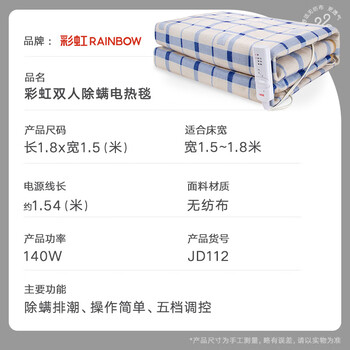彩虹【高温断电】双人五档调控除螨无纺布电热毯电褥子1.8*1.5米