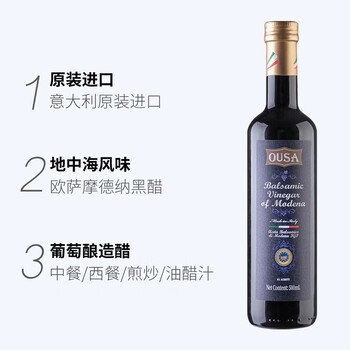 欧萨意大利进口 摩德纳黑醋500ml 葡萄酒酿造水果醋 沙拉西餐调味汁