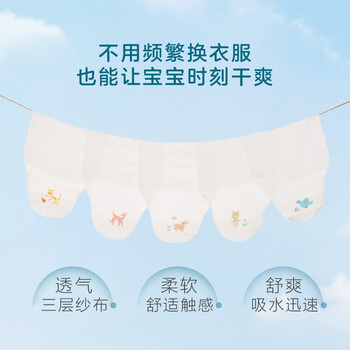 全棉时代婴儿隔汗巾纱布吸汗儿童宝宝开学幼儿园纯棉垫背小熊小鹿小猫3条
