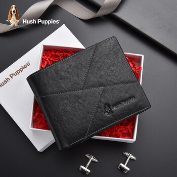 暇步士(Hush Puppies)钱包男真皮短款男士钱包休闲钱夹票夹零钱包卡包证件包 礼盒装