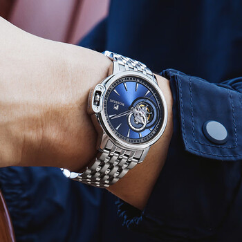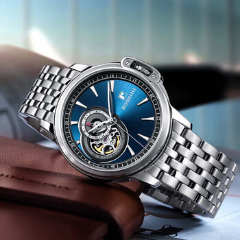 罗西尼(ROSSINI)男士手表机械表勋章蓝盘钢带生日礼物送男友国表商务镂空 8633