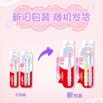 高露洁(Colgate)超密蓬蓬丝儿童牙刷超软毛 2-3-6-12岁换牙期适用 2支装颜色随机