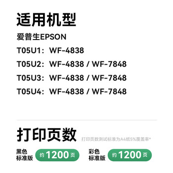 彩格适用爱普生T05U墨盒 爱普生WF-4838墨盒 Epson打印机 WF-7848 WF-7318墨盒墨水 T05U1+U2+U3+U4四色套装
