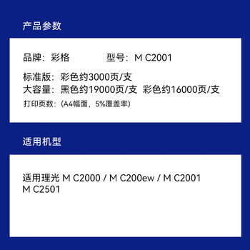 彩格M C2001粉盒适用理光MC2000粉盒Ricoh MC2001碳粉MC2000ew/C/L/SP打印机硒鼓MC2501复印机墨盒墨粉盒碳粉盒