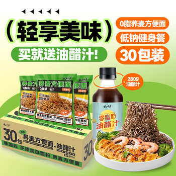 云山半0脂肪荞麦方便面60g*30包+油醋汁280g 面条挂面泡面代餐拌面面饼