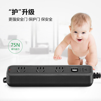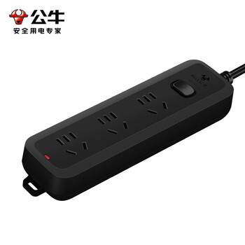 公牛(BULL)插座/插线板/插排/排插/接线板/拖线板GN-B8030H 黑色质感3位总控开关全长1.8米