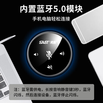 先科(SAST)M-5视频会议宝全向麦克风USB电脑笔记本音响音箱带麦网课录音蓝牙话筒游戏桌面扬声器一体机1.8M线