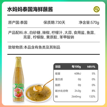 水妈妈 泰国进口 海鲜酱570g 0脂肪 泰式料理冬阴功火锅蘸酱料 辣椒酱