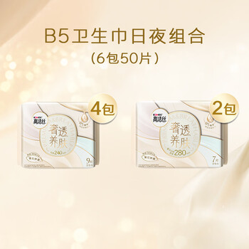 高洁丝【红痒必备】B5奢透养肤卫生巾6包50片日夜组合姨妈巾