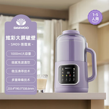 大宇(DAEWOO)轻音破壁机 直流电机 低音降噪细腻免滤 智能预约防溢 自清洗 3-4人免煮微压豆浆辅食料理 SM09-ZL