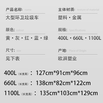 欧湃【企业专属】 大型环卫垃圾桶户外大容量大型清洁垃圾箱加厚塑料物业室外小区垃圾车 1100L环卫垃圾车