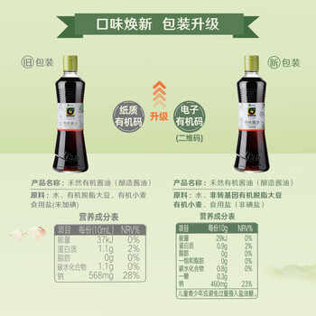 禾然有机 有机酱油500ml【有机 特级酱油】生抽 欣和出品