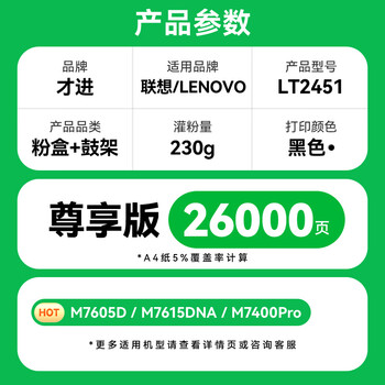 才进适用联想m7400pro粉盒m7605d硒鼓m7615dna墨粉盒lj2605d m7655dhf碳粉m7405d m7455dnf打印机墨盒lt2451h