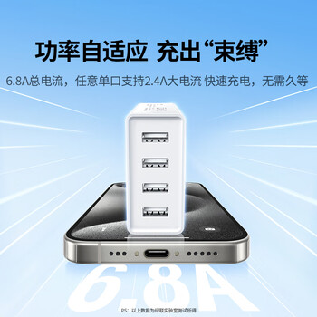 绿联多口USB充电器插座6.8A快充头四口充电头插头适用苹果iPhone17/16e15华为小米iPad平板手表 桌面款