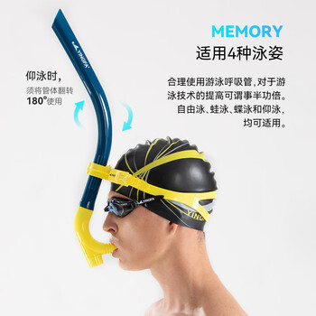 英发(YINGFA)游泳呼吸管 自由专业训练浮潜换气呼吸器前置湿式换气管 宝蓝色