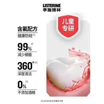 李施德林 (Listerine) 儿童漱口水树莓口味温和防蛀防护清新口气 500ml