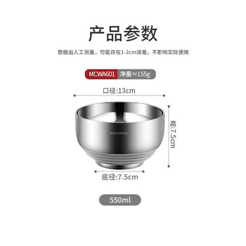 美厨(maxcook)304不锈钢碗 汤碗双层隔热餐具面碗13CM MCWA601