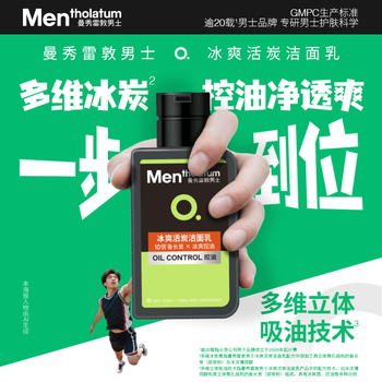 曼秀雷敦男士专用洗面奶冰爽活炭150ml*2 控油去黑头洁面护肤品送男生