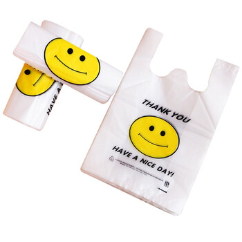 京惠思创加厚降解手提背心袋透明食品购物打包装外卖袋笑脸25*40cm100只