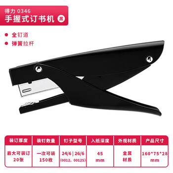 得力(deli)(deli)手握式金属质感耐用订书机/订书器 外卖打包便携手持装订 适配12#订书钉 黑色