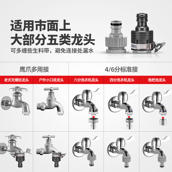 洗车水枪 x 1、接头 x 4、生料带 x 1、20米水管 x 1;