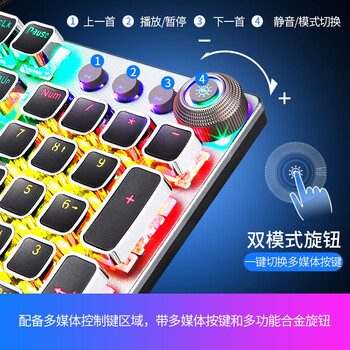 狼蛛(AULA)F2088机械键盘 有线键盘 游戏键盘 104键混光 赛博朋克 宏编程 电脑键盘 黑色 青轴
