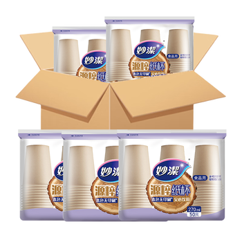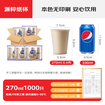 妙洁源粹纸杯整箱装270ml*1000只 加厚一次性杯子茶水本色食品级批发