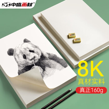 中盛画材素描纸8k素描本绘画纸大白纸速写纸画画彩铅画加厚画纸美术学生用涂鸦8开手抄报绘图纸美术写生