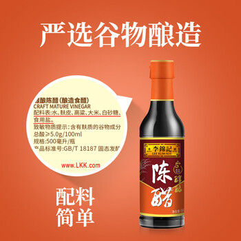 李锦记 醇酿陈醋5°500ml 固态发酵 海鲜饺子点蘸拌炒调味