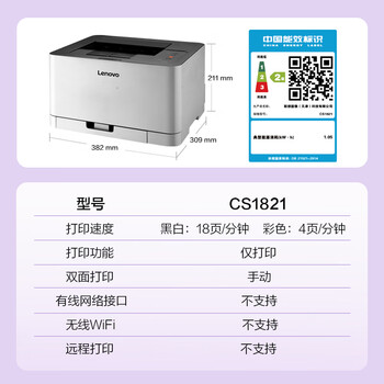 联想(Lenovo)至像CS1821 彩色激光打印机 办公家用学习 学生作业打印机