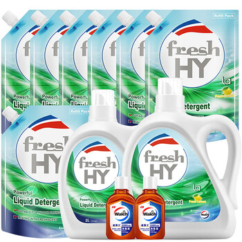 威露士清可新洗衣液柠檬香20.24斤(瓶2L+1L+袋1L*7+消毒液60ml*2)除螨
