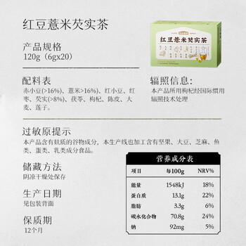 红豆薏米芡实茶1盒120g(20包)