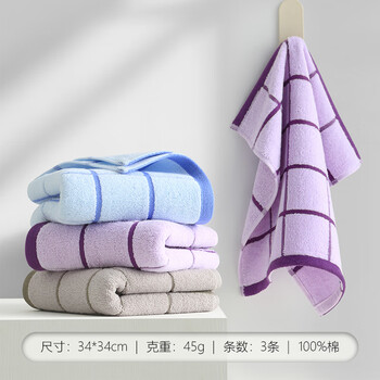 新亚 方巾 纯棉苏伦格子小毛巾全棉洗脸大方巾擦手巾3条装 34*34cm