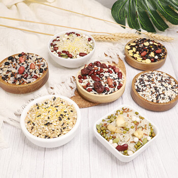 108克八宝粥料*1, 108克绿豆百合粥料*1, 108克黑豆血糯米粥料*1, 108克红豆薏米粥料*1, 108克紫糯薏米粥料*1,108克十谷米*1, 108克红枣谷物粥料*1