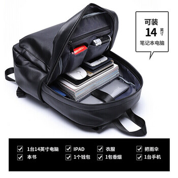 高尔夫(GOLF)双肩包男士14英寸电脑背包男软皮旅行出差包防泼水休闲学生书包