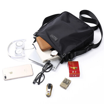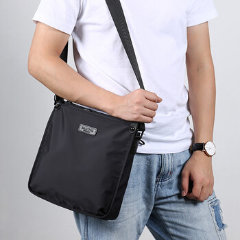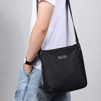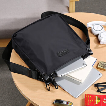 派保爵PaboJoe男包单肩斜挎包头层牛皮配尼龙复合帆布背包休闲挎包男