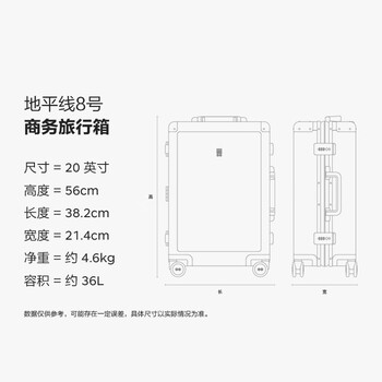 地平线8号(LEVEL8)行李箱男 商务20英寸密码旅行箱铝镁合金登机飞行家拉杆箱女 银