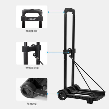 pack all折叠式便携行李车家用拖车小推车拉货购物车手拉车承重30KG 黑色