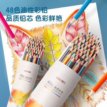 得力(deli)48色油性彩铅纸桶装学生绘画艺术写生彩色铅笔儿童涂色填色彩笔绘画笔彩笔