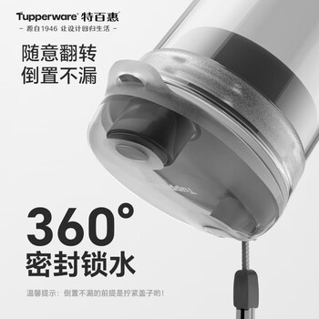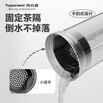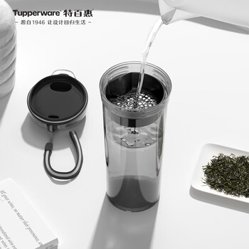 特百惠(Tupperware)晶彩400ml塑料杯男女士学生运动水杯子大容量泡茶杯 酷炫黑