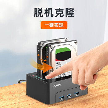 麦沃(MAIWO) K3082H 硬盘底座USB3.0外置读取3.5/2.5英寸串口机械/固态双硬盘带USB分线扩展器拷贝机 黑色