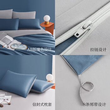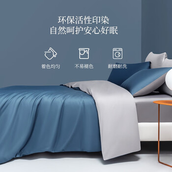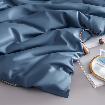 京东京造 植素超柔贡缎 60支长绒棉A类纯棉床单床上四件套 1.5米床 灰蓝