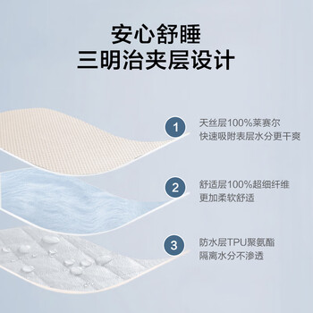 京东京造 兰精天丝防水床笠 3层加厚夹棉A类床垫床罩保护套 1.8米床 米色