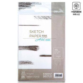 得力(deli)20张110g8K加厚美术绘画专用素描纸彩铅画纸铅画纸 画画纸 写生美术绘画纸73607 规格:20张110g8K