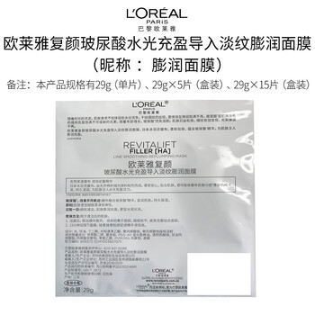 欧莱雅(LOREAL)复颜玻尿酸水光充盈导入淡纹膨润面膜 15片*1
