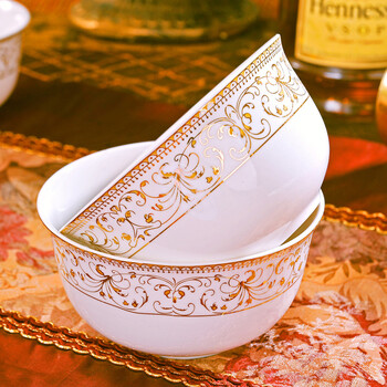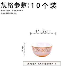 浩雅景德镇碗具套装陶瓷米饭碗小汤碗面碗太阳岛4.5英寸金钟碗10个装