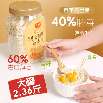 精力沛小麦胚芽燕麦片1180g/罐 富含高纤维蛋白质营养即食冲泡早餐