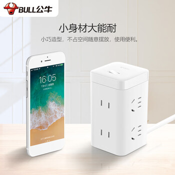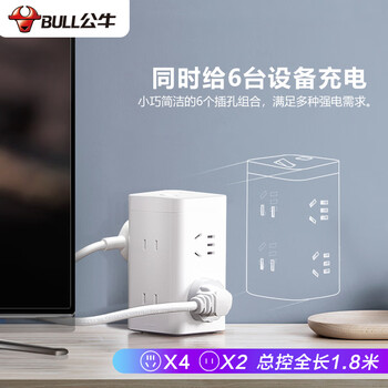 公牛 大魔方插座 插线板/插排/排插/接线板/拖线板 GNV-UE2240 白色魔方6位插座全长1.8米 总控开关